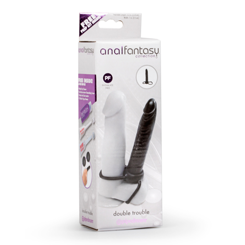 Wenn Sie Ihrer Sexpartnerin doppelten Genuss schenken möchten, sollten Sie den Anal Fantasy Double Trouble im Haus haben. Dank des kleinen Umschnalldildos können Sie nämlich alleine eine doppelte Penetration vornehmen. Sie befestigen die elastischen Ringe rund um Ihren Penis und Ihre Hoden, sodass sich der Dildo an der Vorderseite befindet. Sitzt Ihre Partnerin oben, bietet der Anal Fantasy Double Trouble eine unvergleichliche Erfahrung. Merkmale: Grundfarbe: schwarz Material: Silikon Phthalatfrei: ja Wasserfest: ja Länge: 13,4 cm Einführtiefe: 10,4 cm Durchmesser: 2,5 cm Gebrauch: innerlich Biegsam: ja