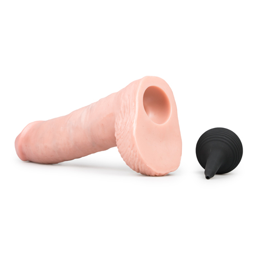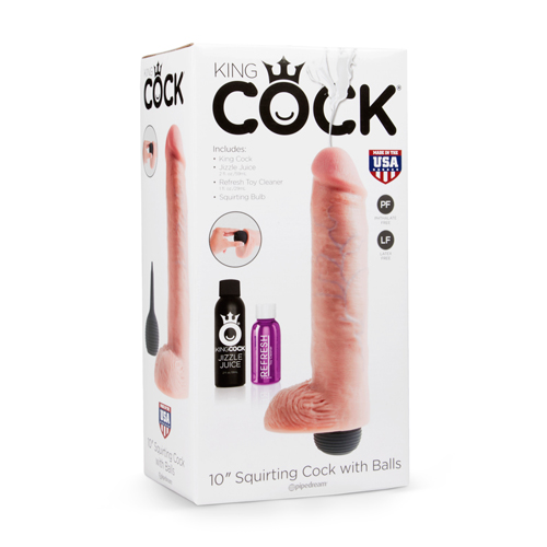 Starten Sie ein lebensechtes Gefühl mit dem Spritzdildo aus der King Cock Kollektion. Dieser realistische Dildo ist aus herrlich weichem, flexiblem Material, das sich lebensecht anfühlt. Trotzdem hat der Dildo einen harten Kern, wodurch er ideal für eine feste Penetration geeignet ist. Neben einer herrlich großen Eichel, einem stark geaderten Schaft und einem großen Hodensack ist dieser Dildo mit einer besonderen Funktion ausgestattet. Sie erhalten mit diesem King Cock Dildo nämlich einen Flacon Jizzle Juice. Dieses Neppsperma ist nicht von echtem Sperma zu unterscheiden und macht Ihr Gefühl absolut komplett. Gießen Sie dies in den mitgelieferten Ballon und verwöhnen Sie sich anschließend selbst. Stehen Sie kurz vorm Höhepunkt? Drücken Sie dann den Ballon aus und fühlen Sie, wie der Dildo Sie vollspritzt! Sind Sie fertig mit dem Spielen? Reinigen Sie dann Ihr neues Spielzeug mit dem mitgelieferten Toycleaner-Flacon. Tragen Sie es auf den Dildo auf und reiben Sie es anschließend mit einem sauberen, trockenen Tuch ab.