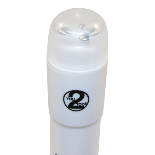 4-teiliges Massage-Set aus festem Gleitmaterial. Vibrator: 10 cm lang, Aufsätze: 2 x 2 cm.