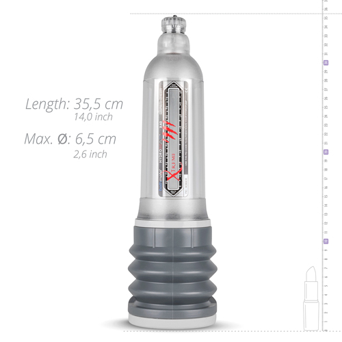 Der HydroXtreme hebt Ihr Hydrotherapie-Training auf eine ganz neue Ebene. Eine Ballpumpe ist im Lieferumfang enthalten, die im Wasser für ein extremeres Pumpgefühl, maximale Zunahme und den Vorteil von absolutem Komfort und Kontrolle arbeitet. Das Set besteht aus einem Tragekoffer, einem Messgerät, einem Reinigungsschwamm, dem HydroXtreme, einer Ballpumpe, einem Komforteinsatz, einem Schlauchaufsatz, einem Pumpenschlauch, einem Sicherheitsschloss, einem Fixiergurt für die Dusche und einem Waschlappen. Diese Pumpe eignet sich für Männer mit einer Penislänge von 17,5 - 23 cm (in Erektion).