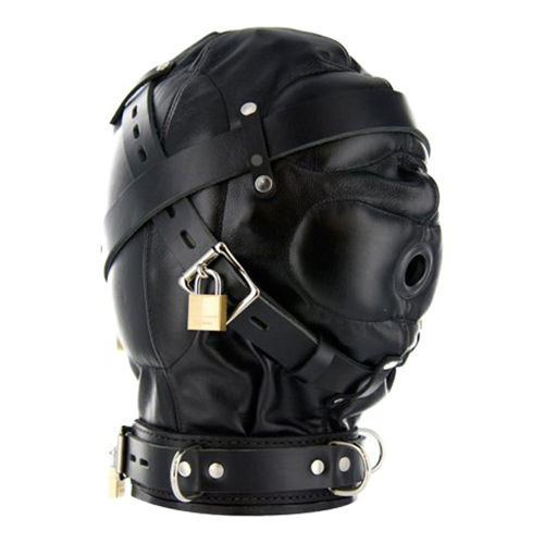 Schwarze Ledermaske - mit Mundloch - für Sinnesentzug