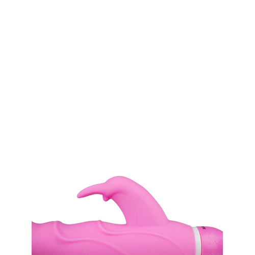 Vibrator mit Reizarm in Häschenform. Mit zwei Motoren: einer in der G-Punkt-Spitze und einer im Klitorisreizam. Die 7 Vibrationsarten sind per Knopfdruck steuerbar. Pink. Ca. 15 cm Gesamtlänge, Einführtiefe ca. 8,5 cm, Ø ca. 2,5 cm. Material: Silikon, phthalatfrei gemäß EU-Verordnung 1907/2006/EC. (Batterien bitte extra bestellen: 2 x Micro/AAA)