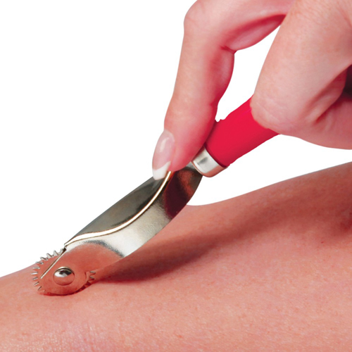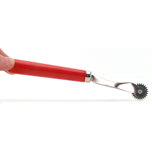 Stimulieren Sie jeden Teil des Körpers mit diesem rollenden Rädchen, auf dem scharfe Spitzen sind. Vielleicht sieht es etwas beängstigend aus, aber der Gebrauch macht jede Berührung ein wenig empfindsamer. Drücken Sie sanft für ein leicht reizendes Gefühl, und wenn Sie etwas mehr Stimulierung wollen, dann drücken Sie etwas stärker. Variieren Sie Geschwindigkeit und Druck. Ein tolles Spielzeug, um die Spannung etwas zu erhöhen. Das Pinwheel, auch "Wartenberg Wheel" genannt, ist aus Stahl hergestellt und kann also auch einen Stoß vertragen. Dieses Pinwheel wird auch im medizinischen Sektor verwendet, um die Nerven zu stimulieren. Es ist 15,5 cm lang und das Stachelrad hat 2 cm Durchmesser. Wird geliefert mit einer gratis Augenbinde.