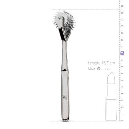 Dieses Wartenbergrad aus der Kollektion von Sinner Gear stimuliert, kribbelt oder pickst die Haut. Das Wartenbergrad ist aus rostfreiem Stahl gefertigt und sehr stark und strapazierfähig. Der lange, schmale Griff sorgt für einen festen und kompakten Griff. Die drehenden Rädchen haben scharfe Spitzen, die über die Haut rollen und Ihnen ein stachelndes, kribbelndes Gefühl verpassen. Das Wartenbergrad hat 7 separate Rädchen, die mit Sexspielzeugreiniger und Wasser leicht zu reinigen sind.